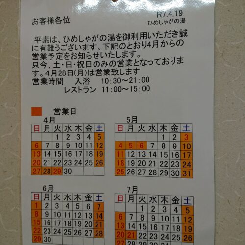 飛騨小坂温泉郷 令和6年6月より土日祝営業